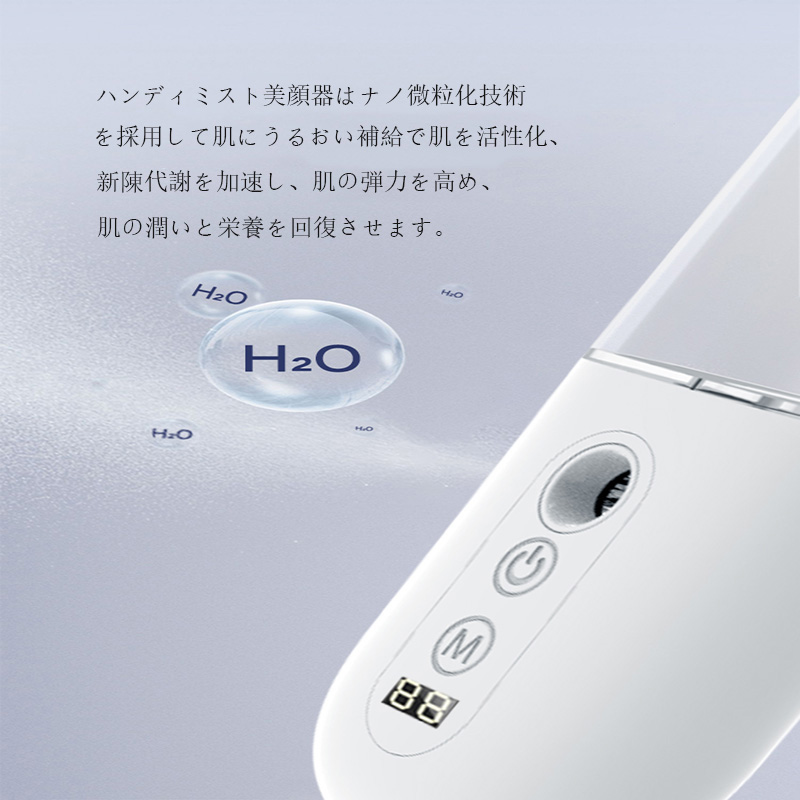 ミクロの霧を吹き出し、細かいミストで肌奥まで補水、お肌の乾燥を防ぎ、加湿の同時に、